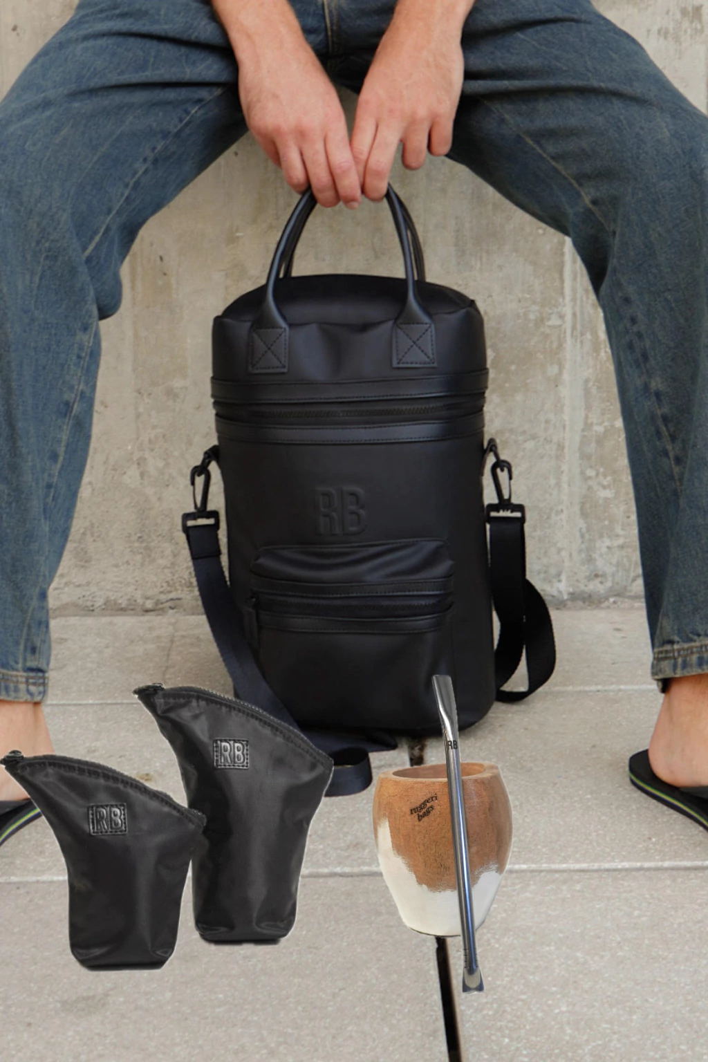 COMBO MATERA NEGRO LISO + SET DE YERBA Y AZUCAR