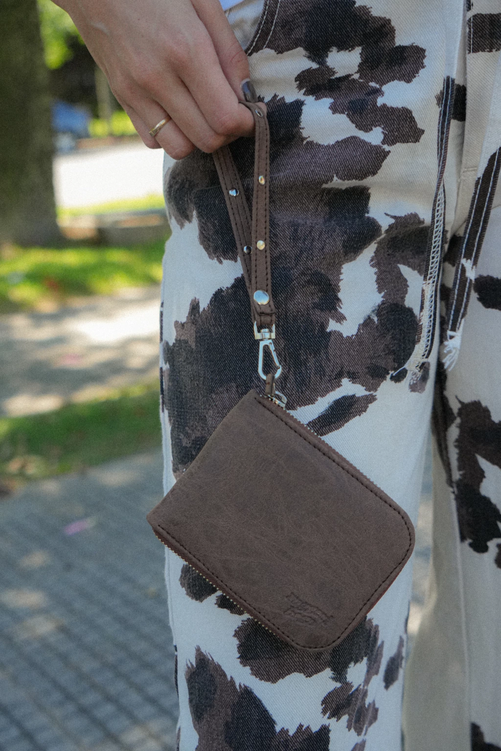 La Billetera Guay está confeccionada en sintético marrón. Apertura con cierre metálico YKK a tono.